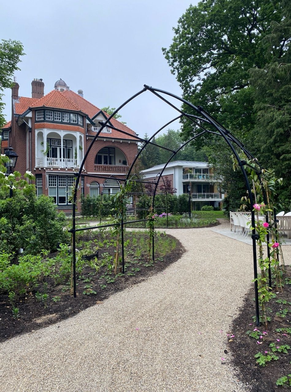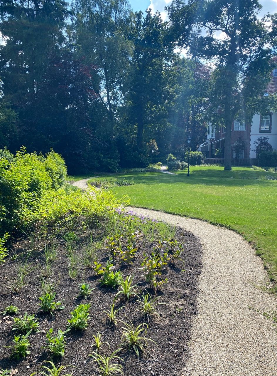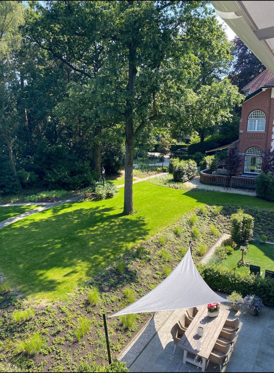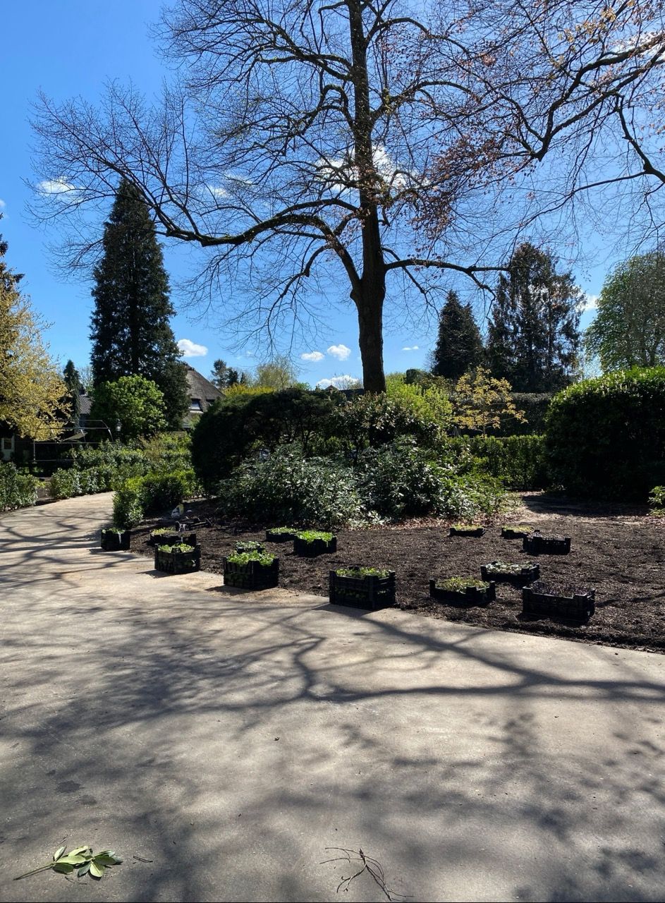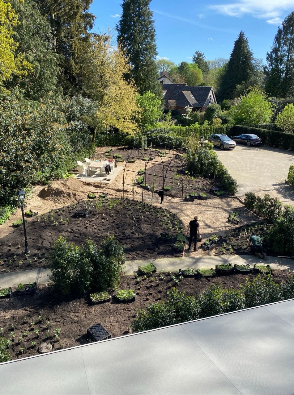 “Dank aan Anne-Sietske die met haar Studio Buitenlijn een prachtige nieuwe parklook heeft ontworpen voor onze tuin, met hergebruik van de bestaande struiken en planten. Met het resultaat zijn we allen erg tevreden.”