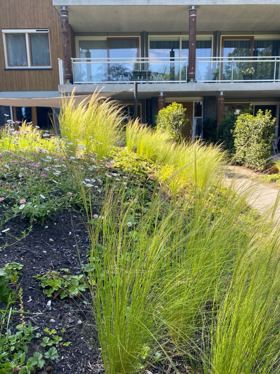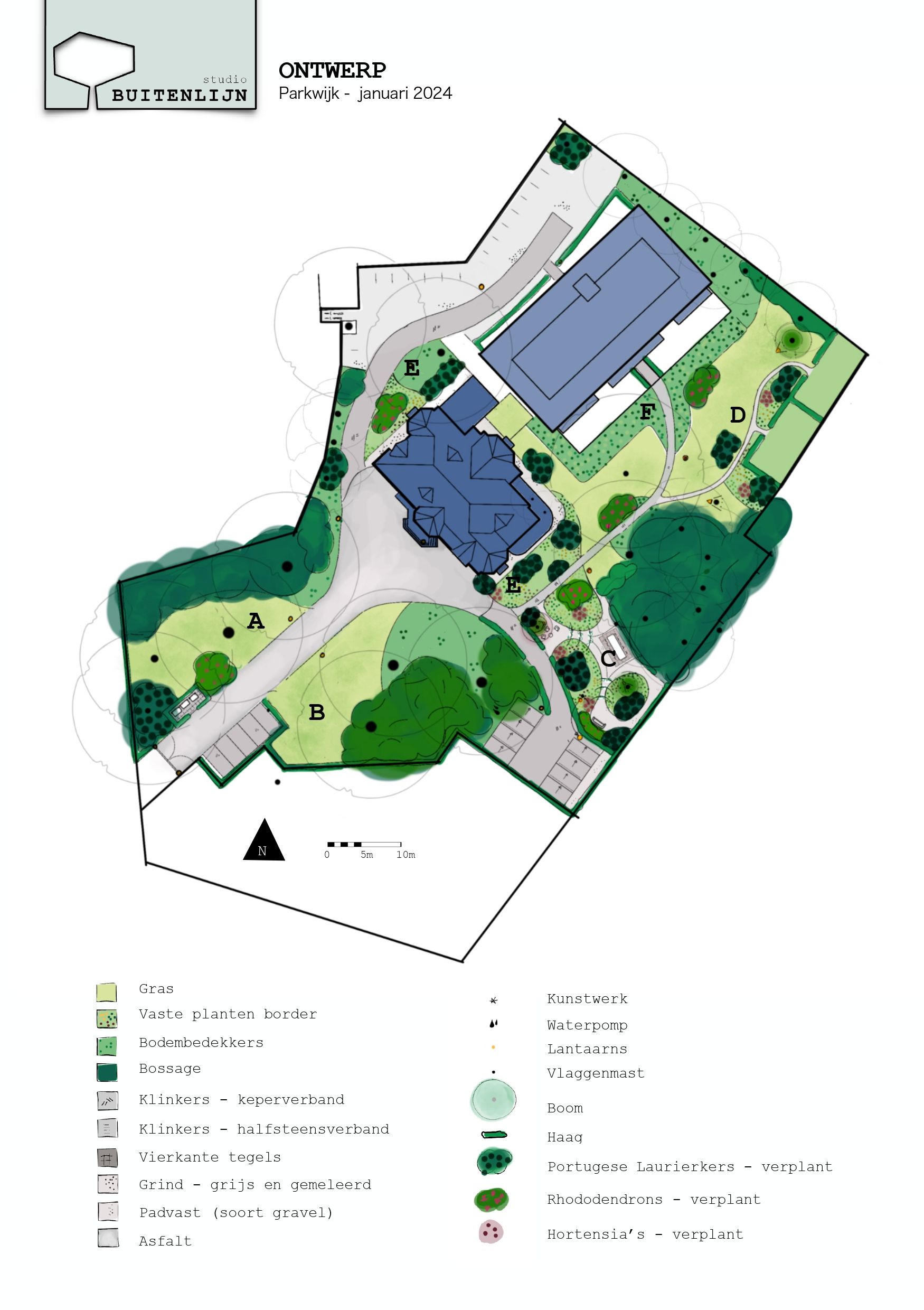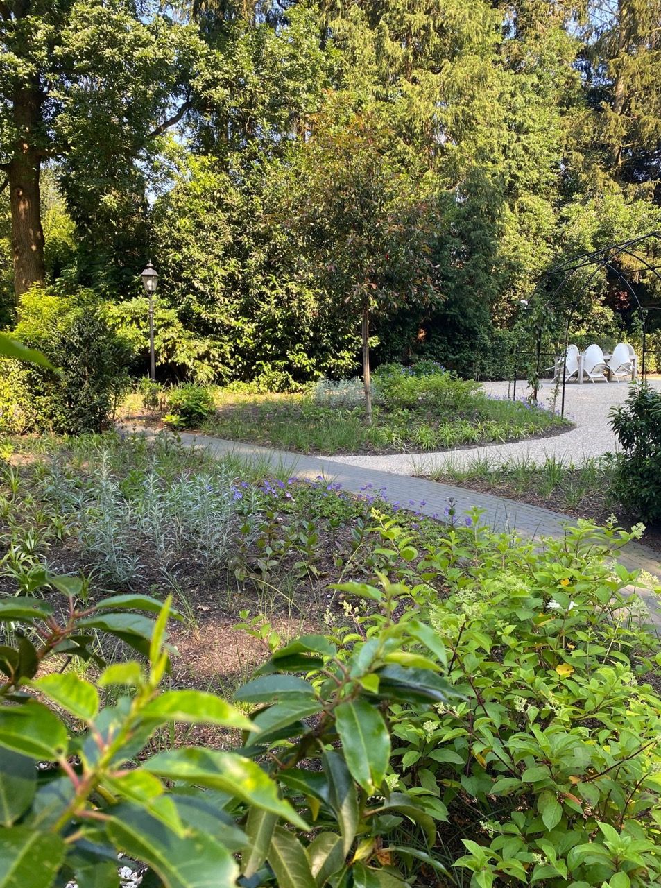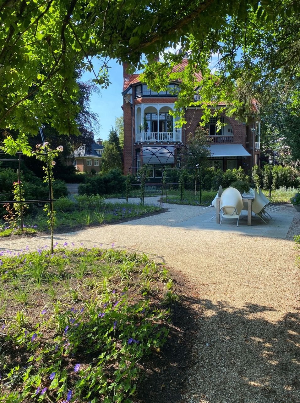 “Dank aan Anne-Sietske die met haar Studio Buitenlijn een prachtige nieuwe parklook heeft ontworpen voor onze tuin, met hergebruik van de bestaande struiken en planten. Met het resultaat zijn we allen erg tevreden.”